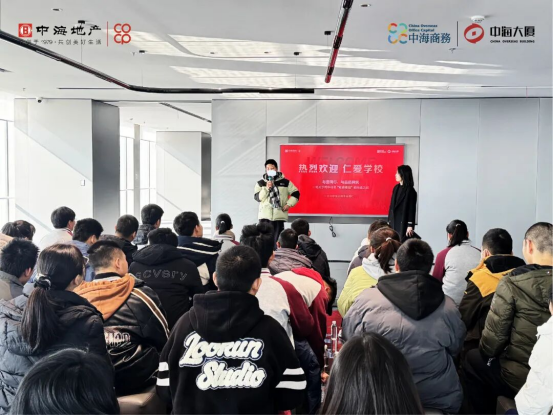 活動中,講解員在中海大廈一樓大廳向學生們詳細介紹中海商務“安全、高效、溫暖”的運營服務標準,并逐一講解安管、前臺、工程、保潔等各職能團隊的日常工作內容。通過實地觀察,學生們深入理解樓宇運營團隊如何通過明確分工與緊密協作,共同保障整棟大廈的安全、有序運行。隨后,學生們前往樓內代表企業,深入企業辦公場景,近距離了解企業的基本運作以及不同崗位員工的日常工作內容。