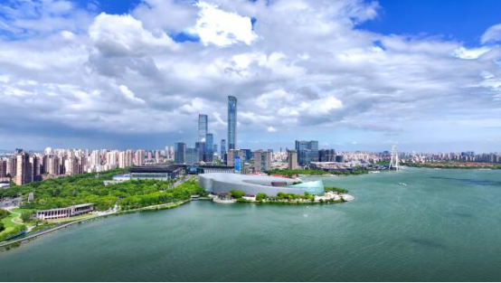 國金中心在園區的全景鏡頭中