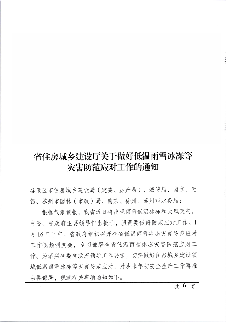省住房城鄉(xiāng)建設廳關于做好低溫雨雪冰凍等災害防范應對工作的通知