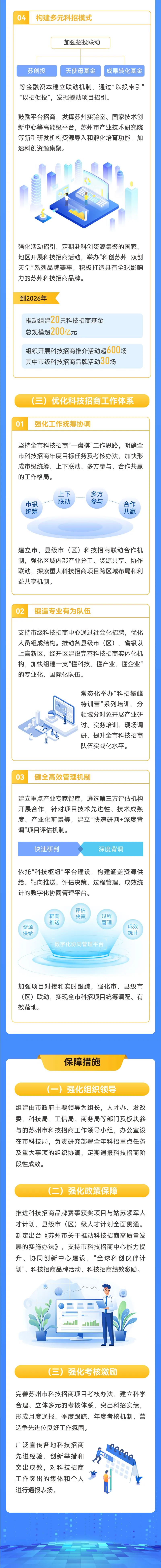 為進一步提高科技招商工作水平,增強我市對高端創(chuàng)新要素的吸引集聚能力,近日,市政府辦印發(fā)《蘇州市科技招商三年行動計劃(2024~2026 年)》。