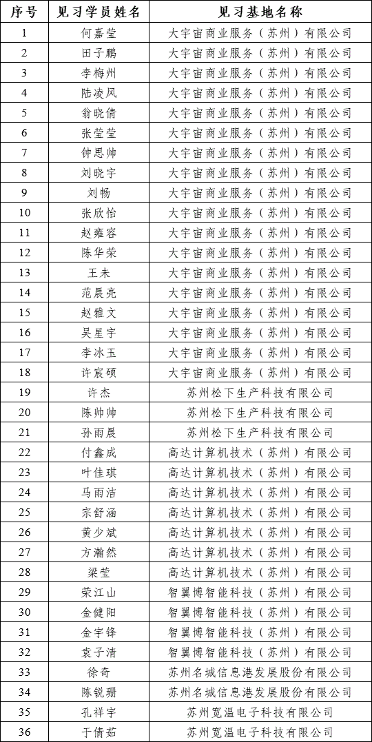 蘇州工業園區見習學員就業補貼公示名單(2025年8月)