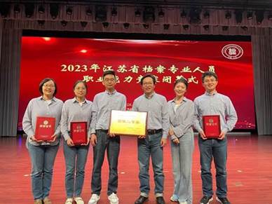 為進(jìn)一步推動(dòng)檔案干部實(shí)現(xiàn)政治素養(yǎng)和專業(yè)素養(yǎng)雙提升、管理能力和業(yè)務(wù)能力同進(jìn)步,以過(guò)硬本領(lǐng)、優(yōu)良作風(fēng)、扎實(shí)成效,為蘇州檔案事業(yè)高質(zhì)量發(fā)展蓄勢(shì)賦能,蘇州市檔案局、蘇州市檔案館聯(lián)合舉辦蘇州市檔案系統(tǒng)崗位練兵活動(dòng)。為進(jìn)一步提升全市檔案服務(wù)外包從業(yè)人員的理論素養(yǎng)和實(shí)操水平,打造業(yè)務(wù)精良創(chuàng)新創(chuàng)優(yōu)的人才隊(duì)伍,凝聚推動(dòng)全市檔案事業(yè)發(fā)展合力,蘇州市檔案局、市檔案館、市委市級(jí)機(jī)關(guān)工委、市總工會(huì)聯(lián)合舉辦了主題為“建功‘十四五’奮進(jìn)新征程”的2023年蘇州市檔案服務(wù)外包行業(yè)技能競(jìng)賽?!吧钊雽W(xué)習(xí)貫徹黨的二十大精神推動(dòng)檔案事業(yè)現(xiàn)代化和高質(zhì)量發(fā)展”調(diào)查研究報(bào)告、“講業(yè)務(wù)促實(shí)干”業(yè)務(wù)精品課和蘇州市檔案系統(tǒng)服務(wù)外包行業(yè)技能競(jìng)賽各評(píng)出一等獎(jiǎng)1名、二等獎(jiǎng)2名、三等獎(jiǎng)3名。本次活動(dòng)對(duì)獲獎(jiǎng)人員進(jìn)行了頒獎(jiǎng)。