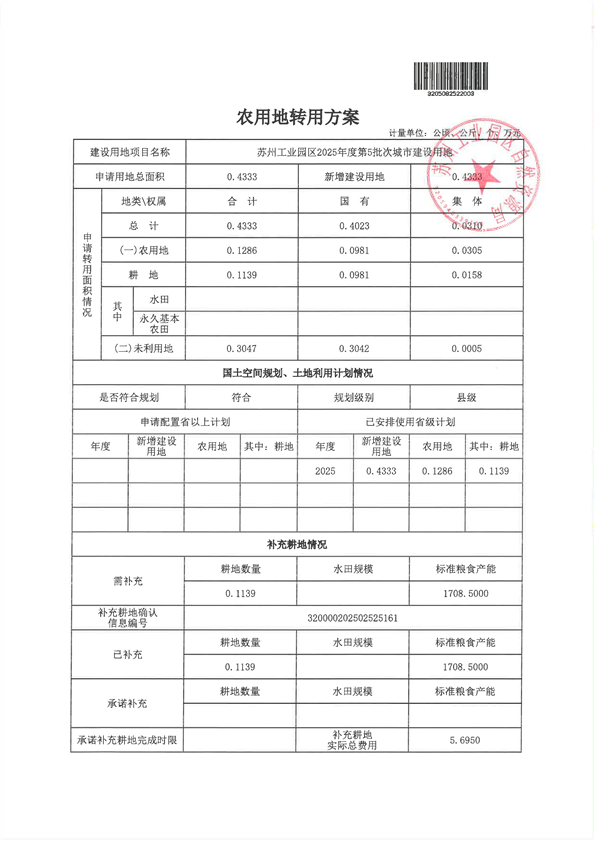 蘇州工業(yè)園區(qū)2025年度第5批次城市建設(shè)用地-報(bào)批材料