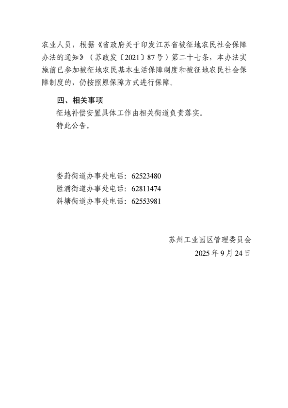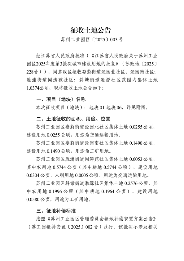 蘇州工業(yè)園區(qū)2025年度第3批次城市建設(shè)用地-征收公告