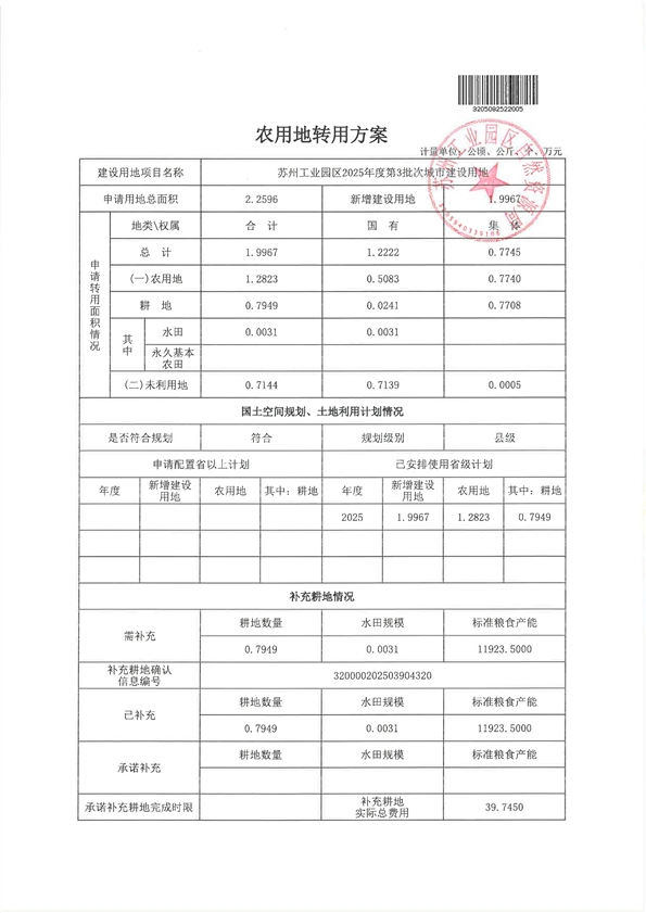 蘇州工業園區2025年度第3批次城市建設用地-報批材料