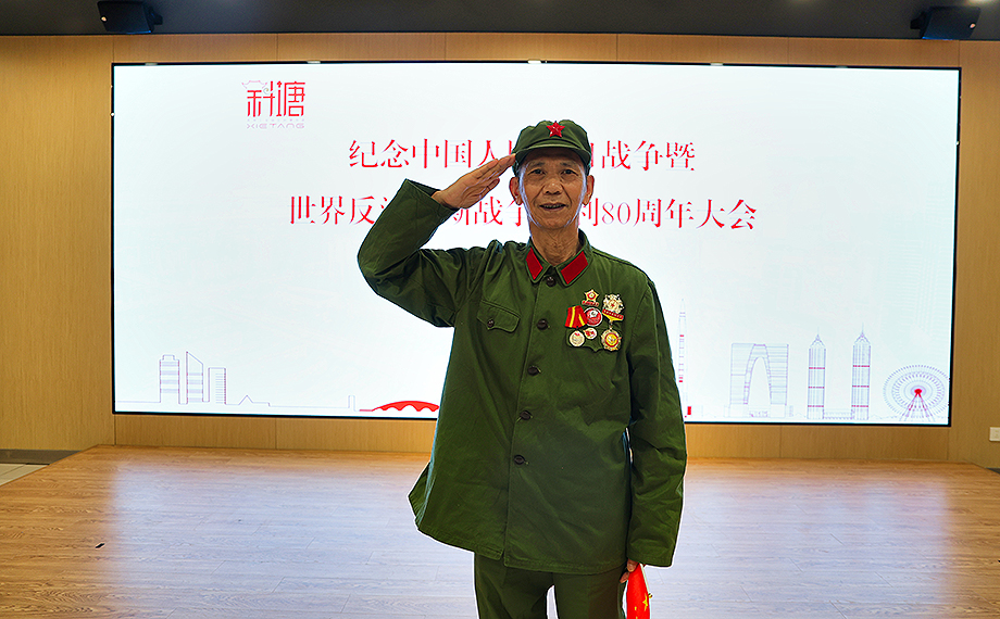 上午九點不到,斜塘街道退役軍人服務站已經集聚了60余位退役軍人。今年80歲的抗美援越老兵肖劍青胸前掛滿勛章,端坐在第一排。“今天觀看閱兵直播非常激動,心情就如當年援越凱旋回國那天一樣。當年,我們奔赴援越抗美的戰爭,武器很落后,完全是憑借著頑強的意志打了勝仗。今天的閱兵式,我看到了很多新式武器,很自豪很激動,我們有能力更好地守衛祖國,捍衛和平。現在,我還是園區八一宣講團成員,我會繼續為年輕一代講解,這是我新的光榮使命。”