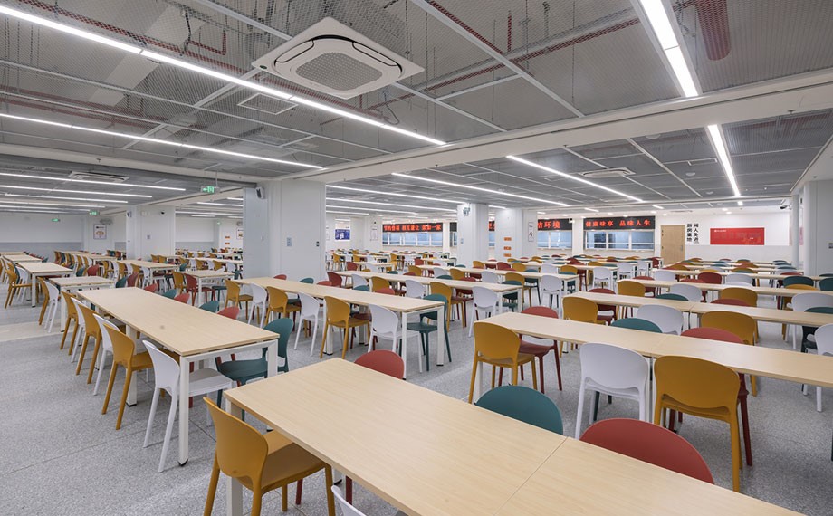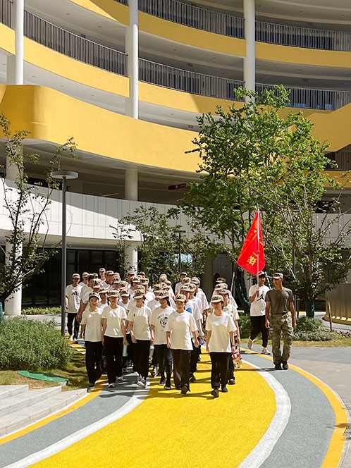 值得一提的是,項目因地制宜,通過造景、借景等手法,令教學樓內、室外空間各具空間美感。在宿舍樓周邊的環形跑道、樓宇之間的零星空間設置的羽毛球、籃球、單杠場地,將碎片化空間高效使用,讓學生的課間休閑成為可能。此外,勝浦路校區集成智慧安防、地下接送系統、智慧體育、智慧教育等模塊,打造科技感、安全感十足的智慧校園,真正將蘇大附中勝浦路校區“愛與智慧”的辦學理念融入校園建設的當下與未來。