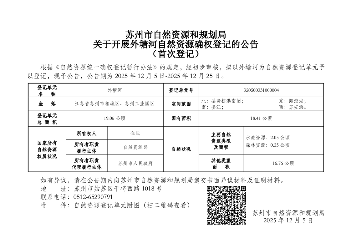 蘇州市自然資源和規劃局關于開展外塘河自然資源確權登記的公告(首次登記)