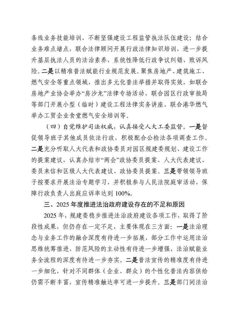 蘇州工業園區規劃建設委員會2025年度法治政府建設情況報告