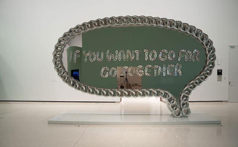 展示ホールの2階には、幅約6メートル、長さ約4メートルの巨大なインスタレーション作品『IF YOU WANT TO GO FAR, GO TOGETHER』が大注目を集めた。同展覧會のハイライトとして、この作品はアーティストの徐震氏によって心を込めて制作された。このインスタレーションは、アートの言語を用いて中國とシンガポールの協力の成果を生き生きと解釈すると同時に、「未來に向けて、中國とシンガポールは引き続き手を攜え、肩を並べていく」という展覧會のビジョンも明確に示している。