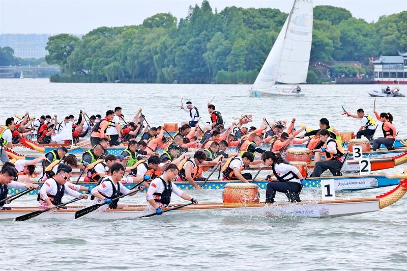 ドラゴンボートレースは既に文化と競技を一體とする國際的なプロジェクトとなった。今年のイベントでは、50以上のブースが並ぶ無形文化遺産バザールや一帯一路國際美食博覧會(huì)などを含む2日間の「端午の節(jié)句の中國」ドラゴンボート祭が開催され、文化、スポーツ、観光、ビジネスの融合を引き続き推進(jìn)する。