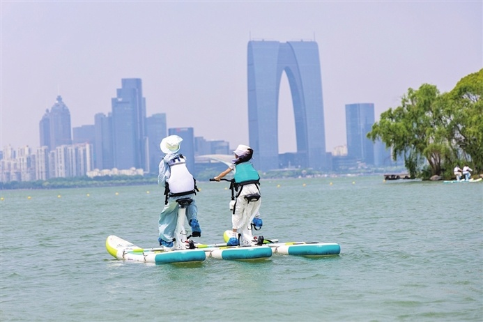 休日期間、金鶏湖の水上プロジェクトは來場(chǎng)者數(shù)のピークを迎えた。統(tǒng)計(jì)によると、金鶏湖の水上関連プロジェクトの來場(chǎng)者數(shù)は延べ3萬人を超え、前年同期比で86%増加した。4月初めに開幕した「2025金鶏湖桃の花文化シーズン」は、すでに28,000人以上の観光客を集めている。