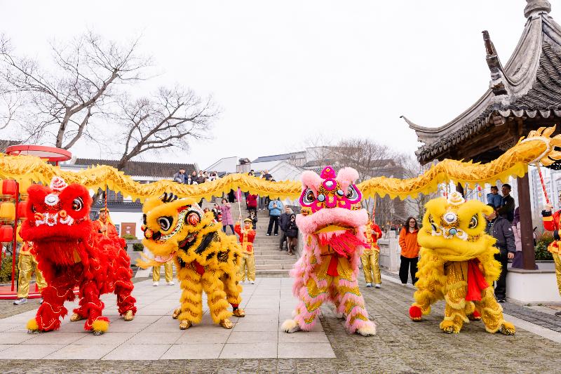 舊暦正月初一(2月17日)、初五(2月21日)、蘇州市舞龍燈無形文化遺産伝承者代表である蔣達夫氏が率いる百花洲龍燈隊が、それぞれ園區の圓融時代広場、斜塘老街、月光埠頭、李公堤の4大商業圏で素晴らしい龍舞や獅子舞パフォーマンスを披露し、伝統的な民俗で新春の喜びを燃え上がらせた。