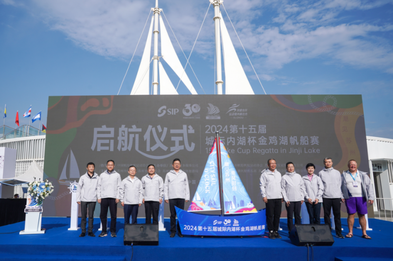 10月18日上午,第15屆城際內湖杯金雞湖帆船賽啟動儀式在蘇州工業園區望湖角帆船碼頭舉辦。