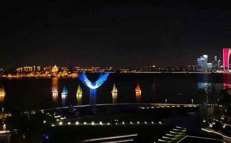 值得一提的是,為提升金雞湖夜景觀賞性,國慶長假和2024體育“兩博會”期間,蘇州八旗帆船俱樂部在金雞湖右岸水域連續(xù)推出帆船夜航巡演,結(jié)合帆船風(fēng)格和視覺效果,精心規(guī)劃夜航線路,打造夜色金雞湖新亮點。