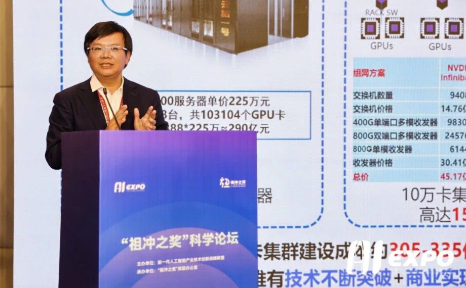 北京大學(xué)信息工程學(xué)院院長、教授田永鴻就下一代超大規(guī)模智能計(jì)算集群面臨的機(jī)遇與挑戰(zhàn)發(fā)表了見解。他認(rèn)為,隨著大模型演進(jìn)趨勢(shì)逐漸為模型越來越大、數(shù)據(jù)越來越多、模型精度要求越來越高等,智能算力逐漸發(fā)展為人工智能研究與產(chǎn)業(yè)發(fā)展的核心驅(qū)動(dòng)力和關(guān)鍵基礎(chǔ)設(shè)施。圍繞建設(shè)讓世界信服的超大規(guī)模智算集群的實(shí)踐經(jīng)驗(yàn)和研究探索,他從突破核心芯片封鎖卡點(diǎn)、體系架構(gòu)探索難題和大規(guī)模組網(wǎng)挑戰(zhàn)等層面進(jìn)行了精彩分享,并面向下一代超大規(guī)模智能計(jì)算集群建設(shè)提出了相關(guān)思考。