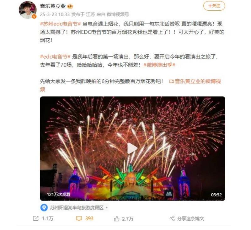 3月23日晚,隨著最后一朵金色煙花在蘇州陽(yáng)澄湖畔夜空綻放,2025EDC雛菊電音嘉年華在數(shù)萬(wàn)電音迷們不舍的歡呼聲中圓滿落幕。這場(chǎng)全球三大音樂(lè)節(jié)IP之一的音樂(lè)盛典,以持續(xù)兩天的超燃舞臺(tái)、科技與藝術(shù)交融的沉浸體驗(yàn),以及近6萬(wàn)名樂(lè)迷共同締造的電音狂歡,在園區(qū)陽(yáng)澄湖半島旅游度假區(qū)締造了新的音樂(lè)高度。