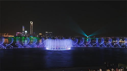 與“蘇州之眼”隔湖相望的,是同樣具有浪漫基因的金雞湖音樂噴泉。去年,金雞湖光影水秀體系整體完成升級改造,音樂噴泉的曲目編排、水形設(shè)計均進行了更新。經(jīng)過重新編排的曲目既體現(xiàn)蘇州元素,又融入現(xiàn)代韻味,與園區(qū)多元包容的城市特質(zhì)相得益彰;噴泉水形設(shè)計則與音樂充分聯(lián)動,可呈現(xiàn)溫婉精致、恢弘壯觀等不同的視覺場景。游逛金雞湖,“蘇州之眼”×金雞湖音樂噴泉的奇妙組合,將讓游客擁有與眾不同的游玩體驗。
