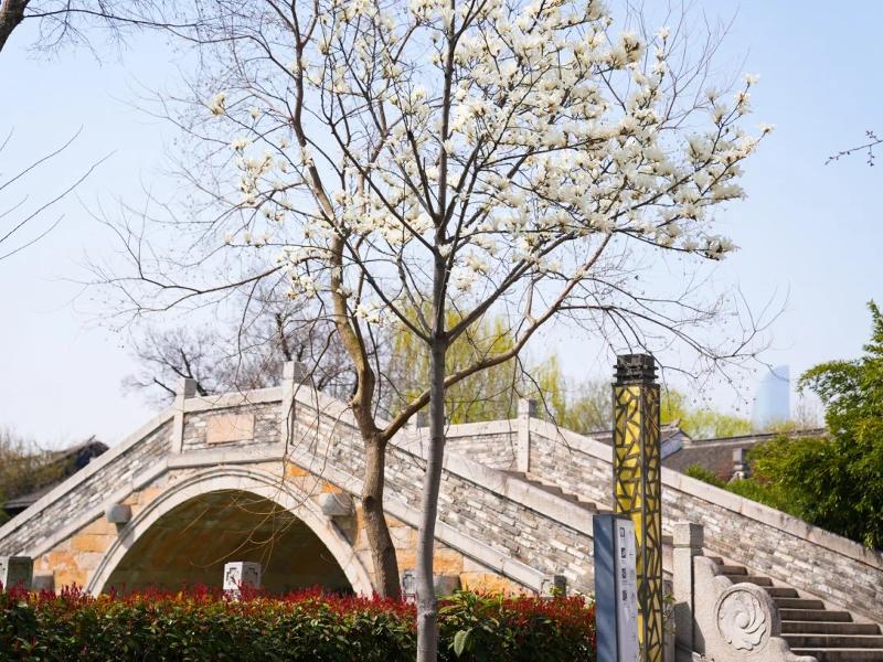 早春時(shí)節(jié),玉蘭樹挺拔而立,花朵潔白如玉,散發(fā)出淡淡的清香。在園區(qū)的各個(gè)角落,都能看到玉蘭花的身影。漫步其中,陽光透過花瓣灑下,光影斑駁,仿佛置身于一幅精致的畫卷之中。