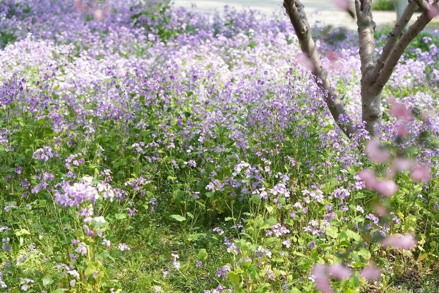 成片的二月蘭盛開時(shí)如同一片紫色的海洋,在春風(fēng)中起伏蕩漾,充滿了神秘與浪漫的氣息。