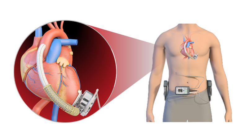 人工心臟學(xué)名“植入式左心室輔助系統(tǒng)”,由體內(nèi)植入部件和體外攜帶部件組成,主要為進(jìn)展期難治性左心衰患者血液循環(huán)提供機(jī)械支持,其核心部件是一個(gè)血泵,將血液從心臟引出,提升壓力后,輸送到主動(dòng)脈,從而達(dá)到卸天然心臟負(fù)荷的功能,使天然心臟得到休息,同時(shí)補(bǔ)充了天然心臟泵血能力不足的問(wèn)題。