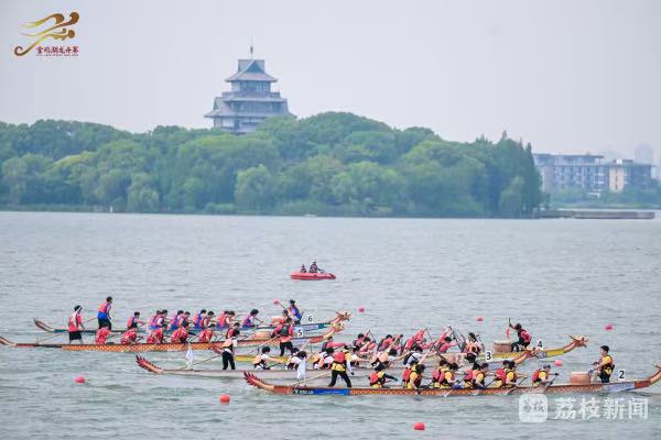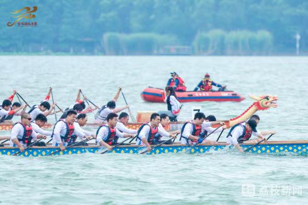 金雞湖上,一艘艘龍舟上演百龍爭渡,龍舟隊員們齊心協力、揮槳如飛,向著終點全力沖刺。現場,既有專業隊伍的速度與激情,也有國際友人解鎖“龍舟新姿勢”,彰顯著“龍舟精神”的多元魅力。如今,金雞湖端午龍舟賽已經成為蘇州的新民俗,吸引了眾多的市民和游客前來觀賽,為自己喜愛的隊伍加油助威。