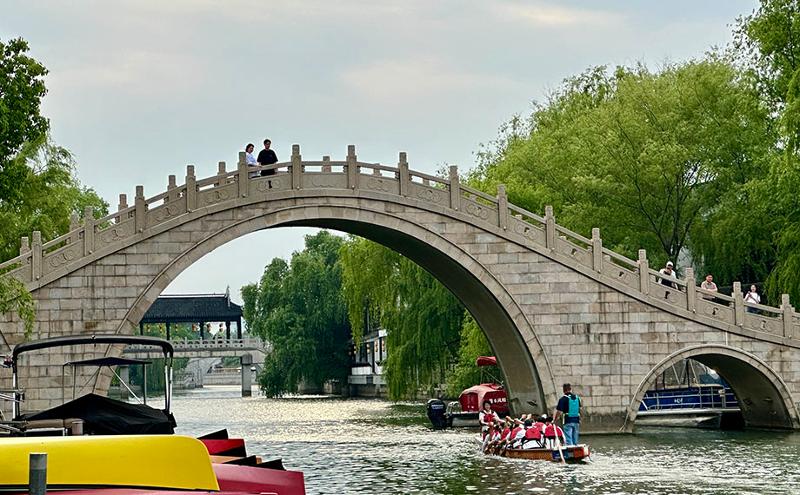 當暮色籠罩斜塘河,粼粼波光之上,船槳劃開水面的聲音與激昂鼓點交織,奏響一曲獨特的奮進之歌。蘇州國際友緣龍舟隊(Suzhou International Friendship Dragon Boat Team)的隊員們正在進行緊張的賽前訓練,不同膚色的手臂,整齊有力地揮動船槳,龍舟如離弦之箭劃開碧波。這支由法國、南非、印度尼西亞等多國留學生組成的特殊隊伍,正以龍舟為紐帶,在園區(qū)這片開放創(chuàng)新的熱土上,演繹著跨越國界的文化對話。