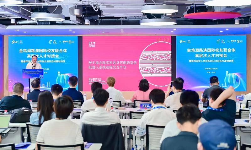 7月10日,2025第十七屆蘇州國(guó)際精英創(chuàng)業(yè)周園區(qū)分會(huì)場(chǎng)分項(xiàng)活動(dòng)——金雞湖路演國(guó)際校友聯(lián)合體高層次人才對(duì)接會(huì)暨春暉留學(xué)人員創(chuàng)新創(chuàng)業(yè)項(xiàng)目蘇州基地路演在國(guó)際人才港舉辦。八大國(guó)際校友組織助陣全球引才,來自7個(gè)國(guó)家(地區(qū))的9個(gè)海內(nèi)外博士創(chuàng)業(yè)項(xiàng)目,聚焦人工智能、生物醫(yī)藥、高端制造等戰(zhàn)略新興領(lǐng)域,上演科技創(chuàng)新盛宴,實(shí)現(xiàn)“全球匯智”與園區(qū)產(chǎn)業(yè)發(fā)展需求的精準(zhǔn)對(duì)接。