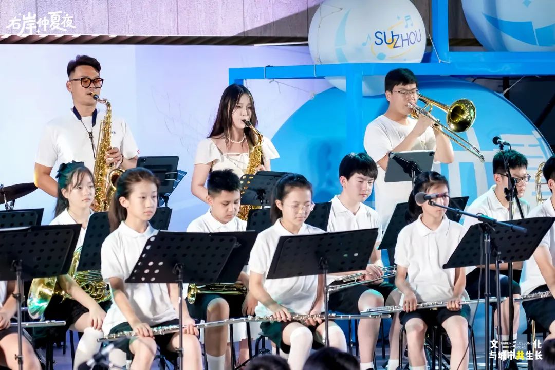 聚光燈下,蘇州工業園區青少年交響樂團、蘇州工業園區青少年交響樂團教師樂隊、圓融·花季青少年藝術團、小白帆合唱團多支優秀青少年藝術團體聯袂獻藝“小小演奏家”們以純粹的熱愛與專業的演繹為市民游客帶來了一場酣暢淋漓的夏夜音樂體驗。