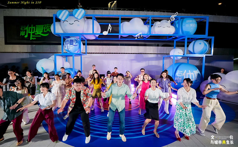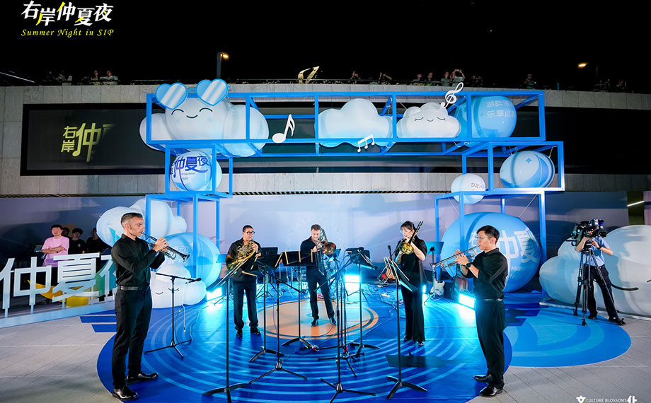 星光為幕,湖水為弦,金雞湖的浪漫在光影與人文的交織中熠熠生輝。流行樂團“佩琦和朋友們”這支由園區青年組成的樂團,也用他們的青春張揚,展現了時尚園區的活力本色。