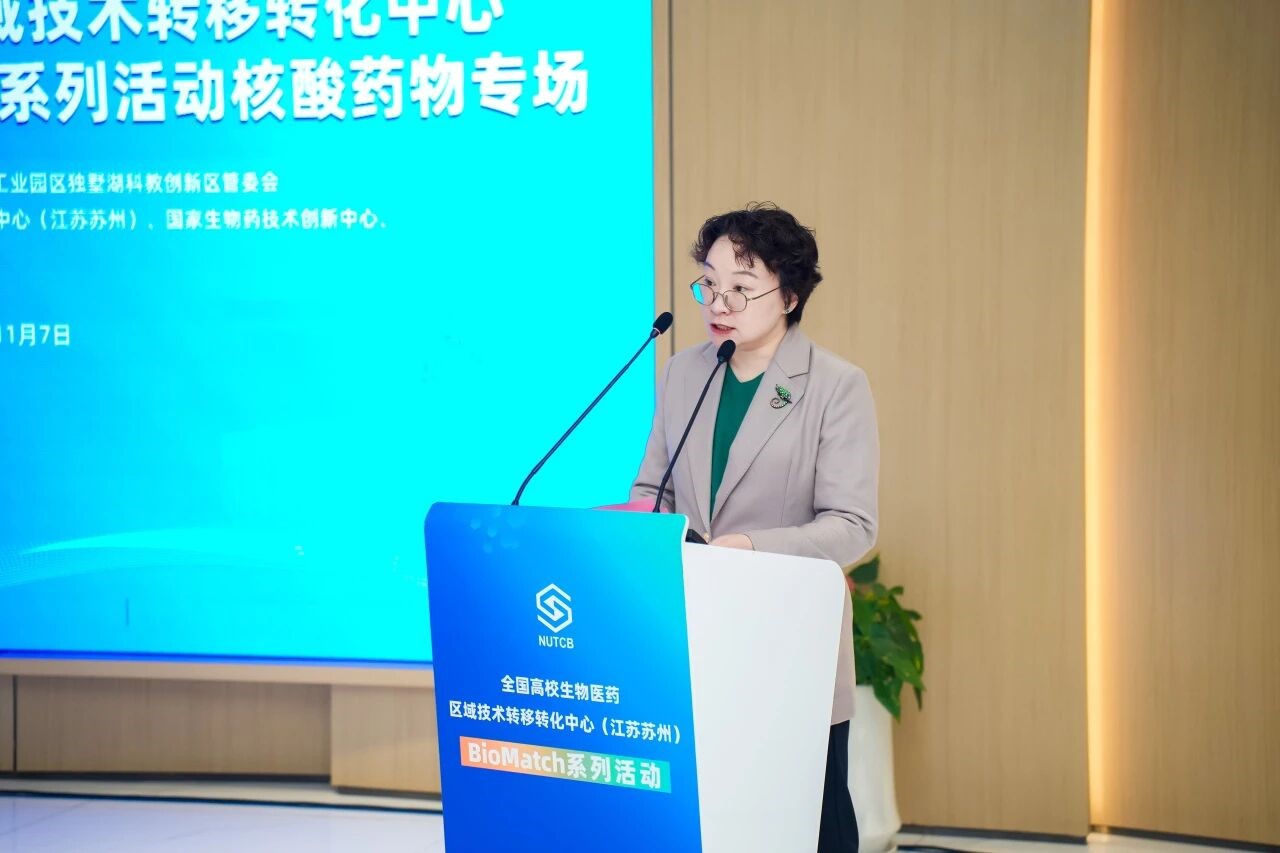 近日,全國(guó)高校生物醫(yī)藥區(qū)域技術(shù)轉(zhuǎn)移轉(zhuǎn)化中心(江蘇蘇州)(以下簡(jiǎn)稱“蘇州生物醫(yī)藥分中心”)與國(guó)家生物藥技術(shù)創(chuàng)新中心、吉瑪基因、中科蘇州藥物研究院聯(lián)合主辦的BioMatch系列活動(dòng)核酸藥物專場(chǎng)圓滿落幕。本次活動(dòng)聚焦核酸藥物領(lǐng)域,通過現(xiàn)場(chǎng)推介、成果路演、專家點(diǎn)評(píng)等環(huán)節(jié),搭建起技術(shù)交流、項(xiàng)目對(duì)接與資源整合的高效平臺(tái),加速高校創(chuàng)新成果向現(xiàn)實(shí)生產(chǎn)力的轉(zhuǎn)化與落地。