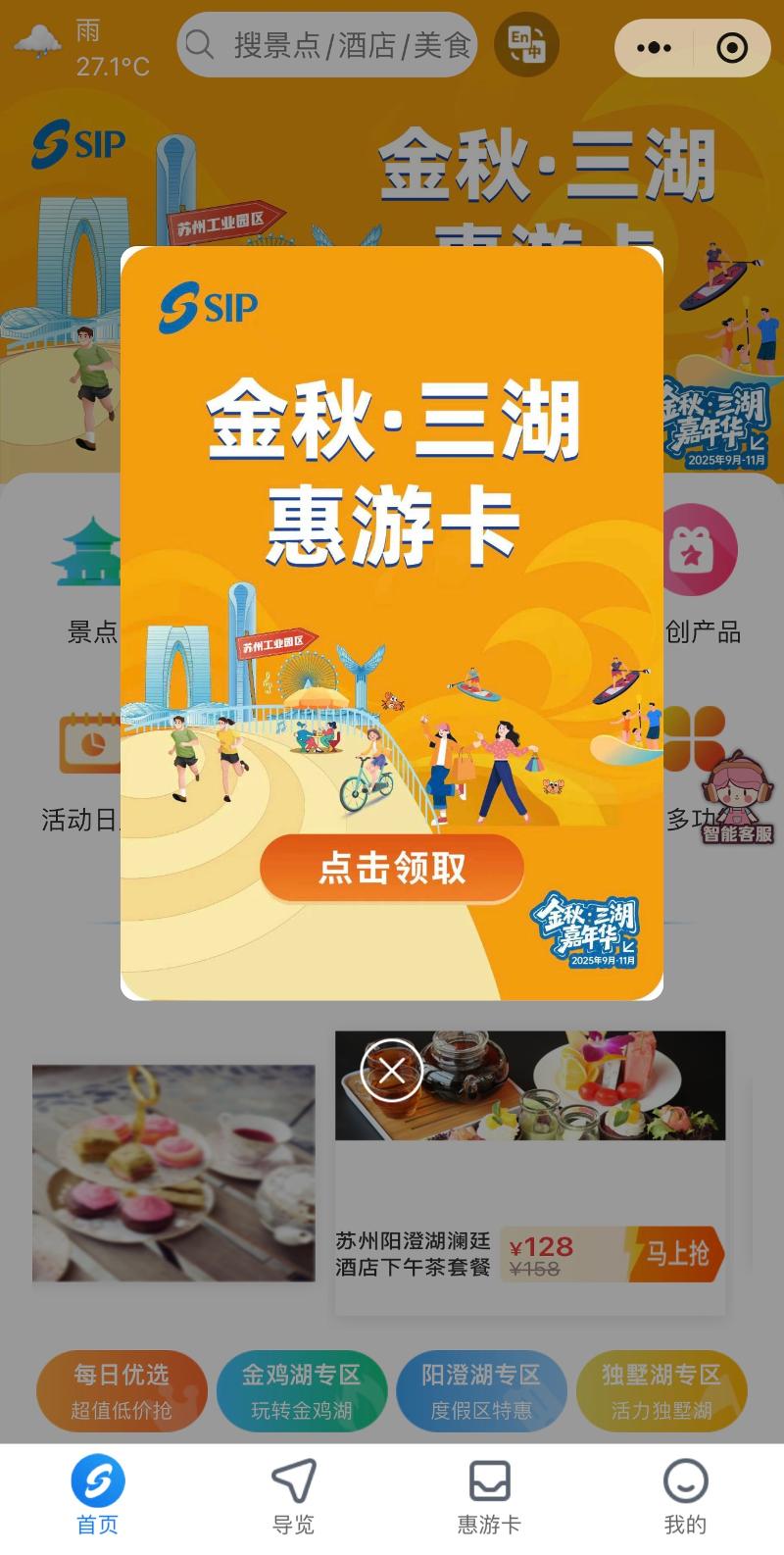為讓市民游客“消費更優惠、參與更輕松”,活動期間推出一系列針對性惠民舉措,覆蓋酒店住宿、餐飲美食、休閑零售、文旅體驗等多個領域。“金秋?三湖惠游卡”重磅升級發布,市民游客通過“惠游園區”平臺免費領取后,可于小程序右下角“我的”—“我的卡包”中,快速查看。