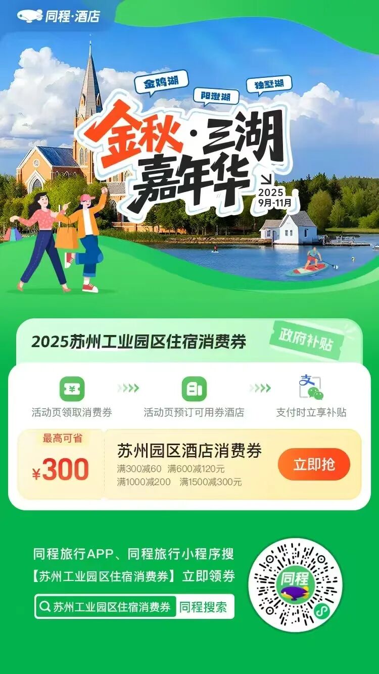 這個秋季,園區“金秋?三湖嘉年華”盛大啟幕,以“千家商戶聯動、十萬好禮派送、億元讓利惠民”的重磅力度,為市民游客打造一場集潮流時尚與人文漫享于一體的“蘇式生活”盛宴。活動聚焦“吃住行游購娛”全鏈條,通過真金白銀的補貼及多元優惠舉措,讓大眾輕松解鎖“非凡園區”的金秋樂趣。