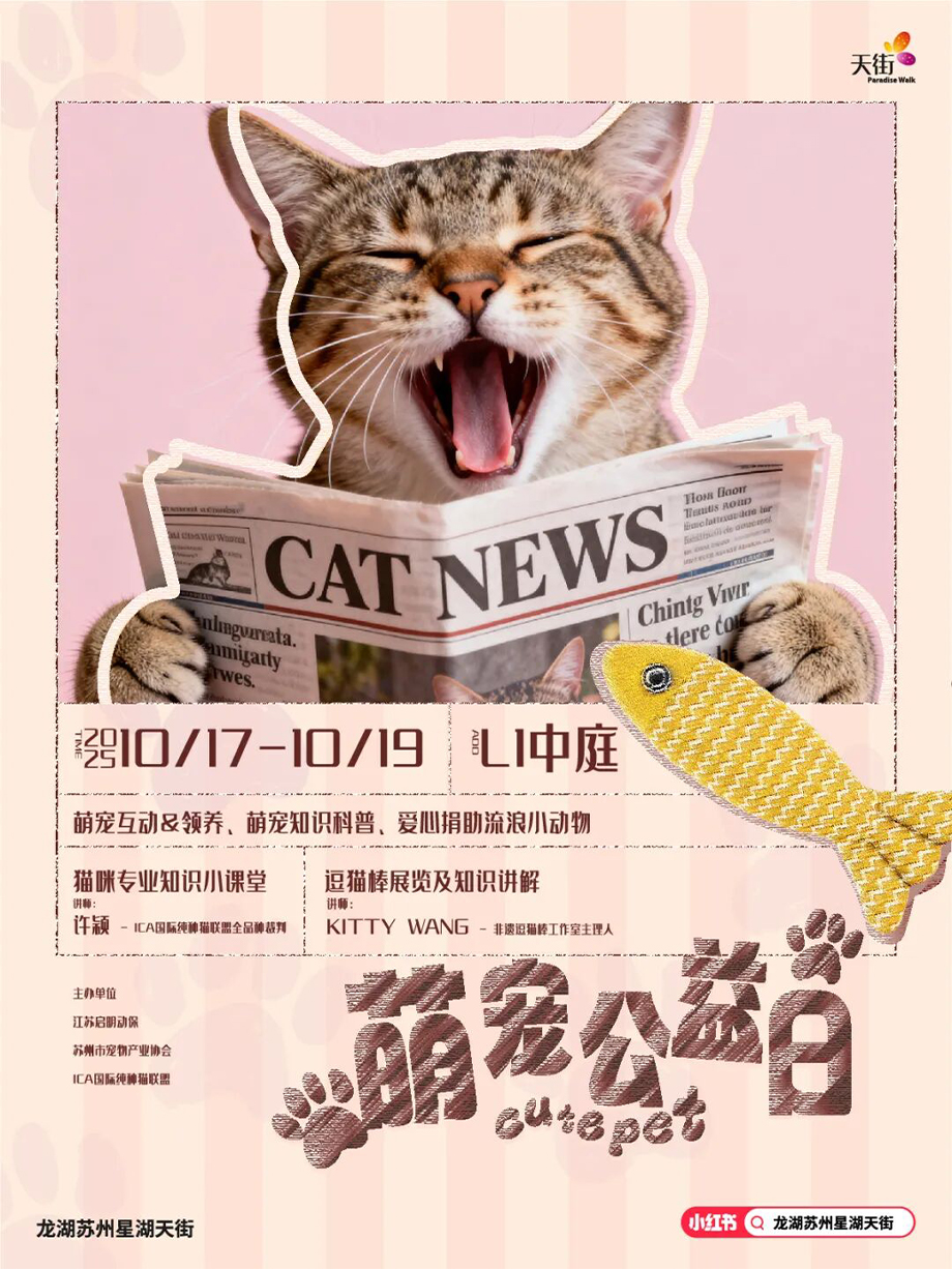 此外,10月17日—19日,星湖天街萌寵公益日活動也在星湖天街優(yōu)衣庫中庭同步上線。萌寵互動&領(lǐng)養(yǎng)、萌寵知識科普、萌寵愛心捐助等活動等你參與,還有ICE國際裁判現(xiàn)場授課貓咪的專業(yè)知識,以及非遺逗貓棒工作室主理人帶來逗貓棒展覽及知識講解。