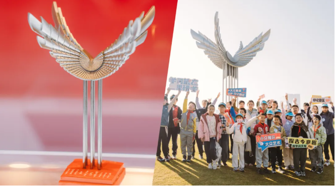 在“飛翔”雕塑下,解讀三十年發(fā)展脈絡(luò)中“面向未來”的園區(qū)精神。