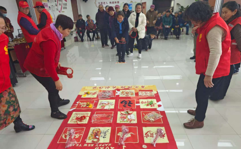 另一份來自街道就業公司養老服務中心的禮物,則在綜合為老服務南部中心被悄然打開。老式爆米花爐“嘭”的一聲脆響,瞬間喚醒了老人們沉睡的味蕾;非遺傳承人現場制作傳統小吃,香甜的氣息勾連起幾代人的往昔回憶。傳統手藝互動區前,長者們圍坐案前揮毫潑墨,提筆落筆間,橫豎撇捺蒼勁舒展,祝福在紅紙上蜿蜒;趣味游戲區內,大家組隊參與,手持套圈重拾童趣,歲月的褶皺漾起輕松與愜意的笑顏。最后的暖心文藝展演環節,長輩們齊唱耳熟能詳的老歌,用熟悉的旋律奏響時代記憶,讓濃濃的新春暖意縈繞全場。