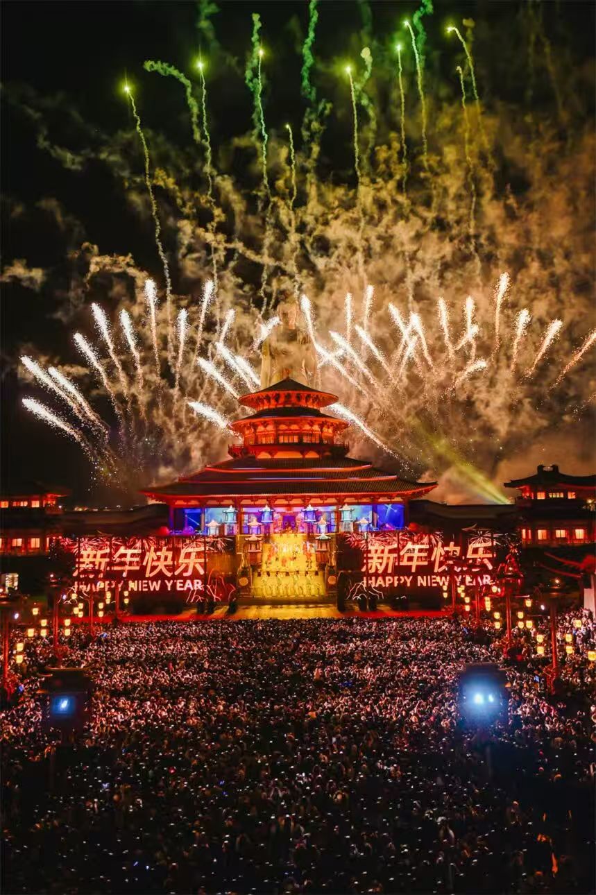 新春期間,陽澄半島樂園內人聲鼎沸,夜幕下的煙花秀更是成為當之無愧的“流量擔當”。隨著倒計時聲響起,馬年限定吉星高照煙花秀準時綻放,一朵朵璀璨煙花劃破靜謐夜空,瞬間化作萬點金光,將湖面與夜空一同裝點得如夢似幻。現場歡呼聲、贊嘆聲此起彼伏,家長牽著孩童的手駐足仰望,情侶并肩定格浪漫,不少游客舉起手機、相機記錄美好瞬間,大家在絢爛光影中許下新年心愿,讓馬年的好運從這片璀璨夜空正式啟航。