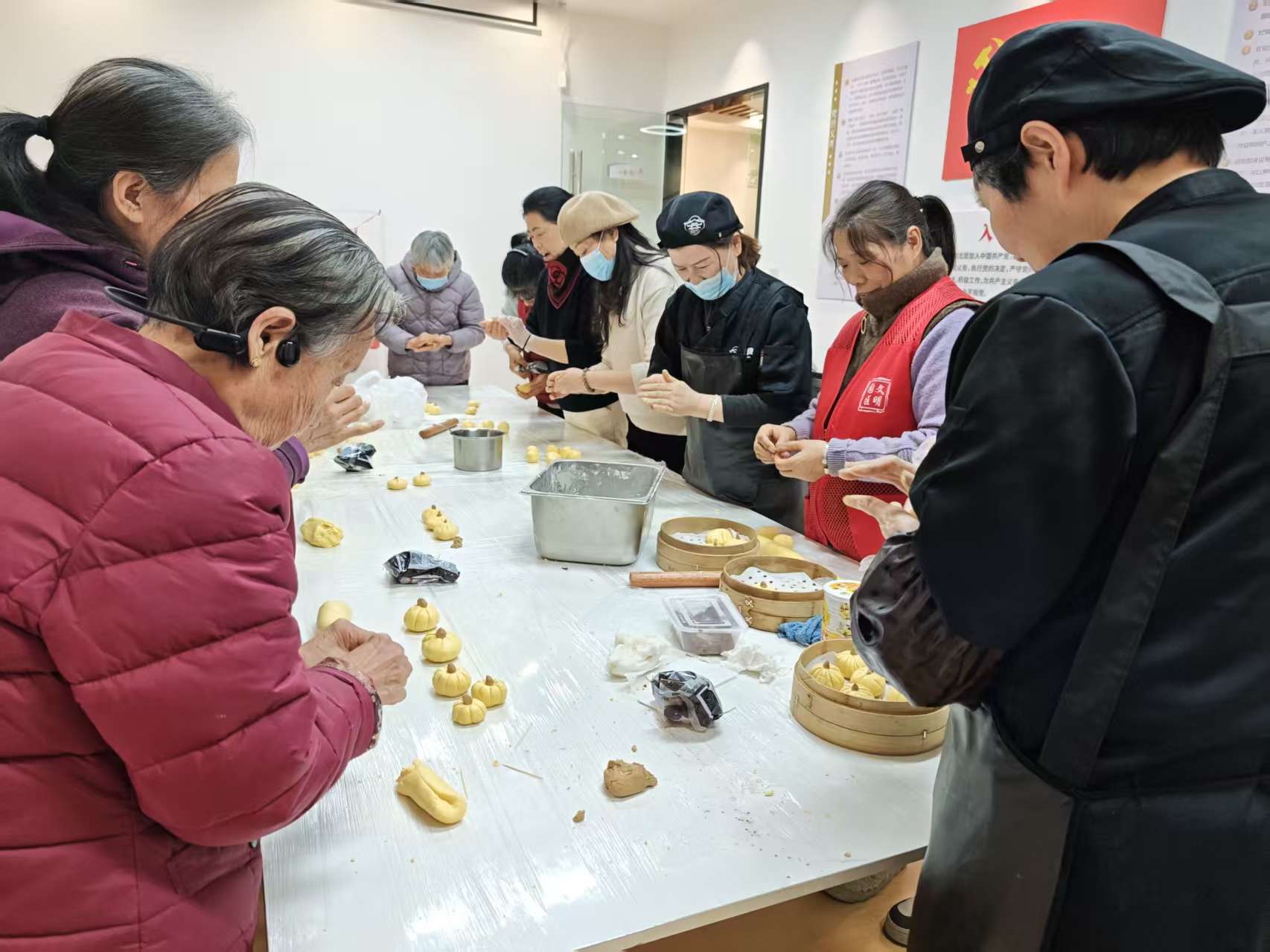為增加轄區(qū)居民的文化生活,進(jìn)一步增進(jìn)鄰里情感交流,文薈苑社區(qū)開展“以食暖冬,以味連心”美食制作活動,品南瓜之香,享動手之樂?;顒右潦迹L桌便化身成為溫馨的“社區(qū)廚房”。金燦燦的南瓜泥、雪白的糯米粉、香甜的豆沙餡料一應(yīng)俱全。在美食達(dá)人的帶領(lǐng)下,大家揉面、分團(tuán)、捏窩、包餡、收口……步驟看似簡單,卻處處是手藝的考驗(yàn)。大家互相切磋著“不粘手”的秘訣,分享著家鄉(xiāng)的不同做法,在鍋碗瓢盆的輕聲碰撞與陣陣歡聲笑語中,鄰里情誼如同這手中的面團(tuán),愈發(fā)緊密而柔韌。