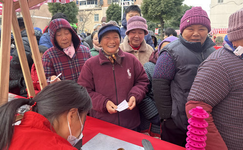 活動現場布置了新春主題背景板,專業攝影師全程跟拍,滿足老人的多樣需求。老人們或與家屬并肩而立,記錄闔家團圓的溫馨時刻;或與同齡老友結伴同框,珍藏歲月沉淀的鄰里情誼。一張張笑臉被鏡頭收錄,現場打印、即時贈送,成為老人們手中實實在在的新春紀念。暖心服務不止于此,“巾幗”志愿者現場化身“健康守護者”,為老人們測量血壓、血糖,并對指標異常者逐一叮囑日常注意事項,提醒他們及時就醫。從暖心留影到健康守護,從貼心服務到真摯陪伴,社區用務實的行動,為高齡老人送上新春的祝福與心安。