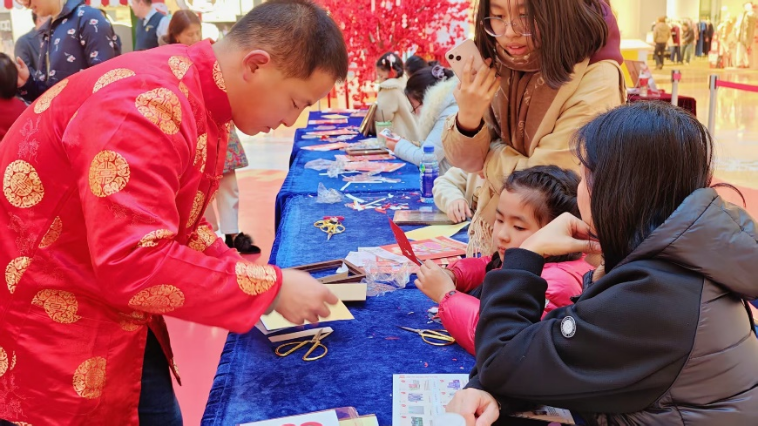一張紅紙,一把剪刀,剪出濃濃年味。巧手翻飛間,一幅幅寓意吉祥的剪紙作品便躍然紙上。非遺剪紙活動(dòng)現(xiàn)場(chǎng),剪紙藝術(shù)大師們現(xiàn)場(chǎng)展示剪紙技藝,并帶領(lǐng)大家剪出各式各樣的窗花、福字,為家中增添喜慶氛圍,傳遞對(duì)新年的美好祝愿。