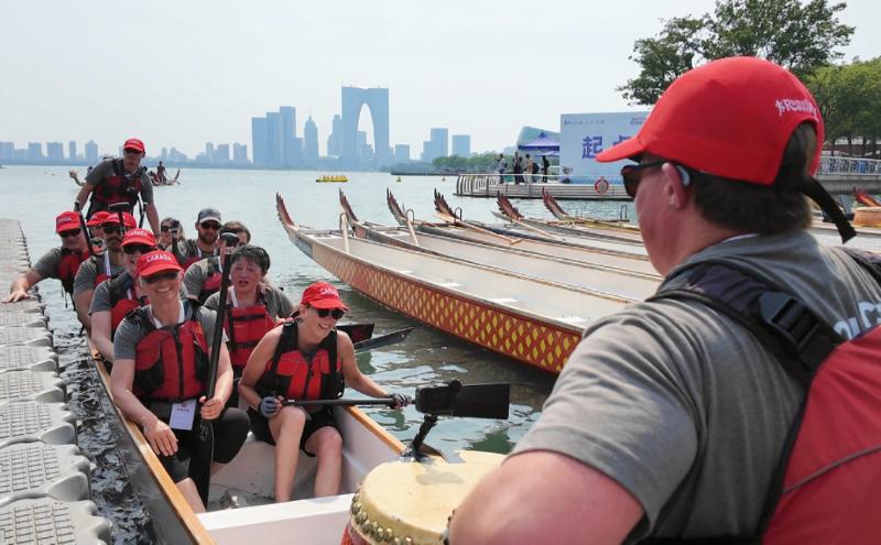 槳聲光影,中加友誼的漣漪在金雞湖面上久久蕩漾。龍舟是條神奇的紐帶,它載著加拿大維多利亞市龍舟隊的故事漂洋過海,又在蘇州園區找到新的港灣。在即將到來的龍舟賽中,這支隊伍將在金雞湖畔劃出屬于他們的精彩,讓這份跨越萬里的友誼在龍舟的飛馳中愈發深厚。
