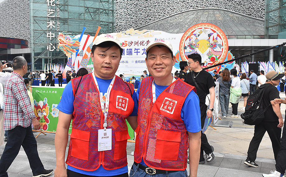 “體驗區請往這邊走!”在非遺科技龍舟體驗區,網格長楊章繹正熱情地為游客指引方向。“前期我們進行了踩點、人員安排等,今天我六點半就到現場待命了。這次我主要負責非遺科技體驗區游客問詢、觀賽引導及秩序維護等工作。”楊章繹是來自園區企業江南嘉捷的員工,也是一名資深志愿者。自金雞湖端午龍舟賽首次招募志愿者開始,他就一直報名參與賽事的志愿服務工作?!澳軌虺掷m為園區大型賽事貢獻自己的力量,我覺得很快樂也很自豪。我們要通過完善的服務,展現蘇州和園區的城市溫度?!?/p>