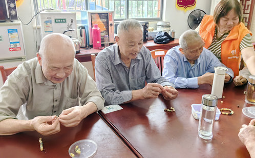 面對(duì)銀齡群體精神文化供給不均衡現(xiàn)狀,蓮韻社區(qū)日間照料中心創(chuàng)新打造“藝趣工坊”,推出菩提串珠、水晶花藝、綠植盆栽等手工課程,為長(zhǎng)者搭建了一座“精神糧倉(cāng)”,在創(chuàng)造中重拾生活意趣。在紅色管家志愿者的指導(dǎo)下,一顆顆菩提籽在指尖串聯(lián)成寓意吉祥的珠鏈,晶瑩剔透的水晶花在巧手下綻放出別樣光彩,充滿生機(jī)的綠植盆栽在精心照料中煥發(fā)盎然綠意,這些手工項(xiàng)目宛如“生活的調(diào)色盤”,不僅成為疏解孤獨(dú)感的“情緒減壓閥”,更以美育浸潤(rùn)煥發(fā)銀齡精神風(fēng)貌,推動(dòng)社區(qū)文化服務(wù)從零散活動(dòng)向常態(tài)化滋養(yǎng)體系躍升,為精塑“雅趣共生”服務(wù)格局注入鮮活脈動(dòng)。