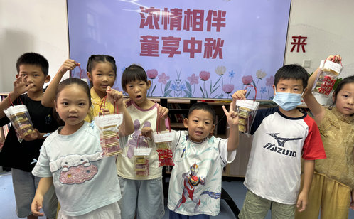 社區(qū)二樓活動中心歡聲笑語不斷,“濃情相伴童享中秋”親子活動吸引30余組家庭參加。