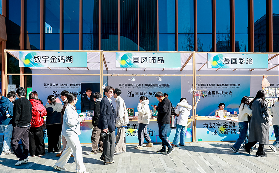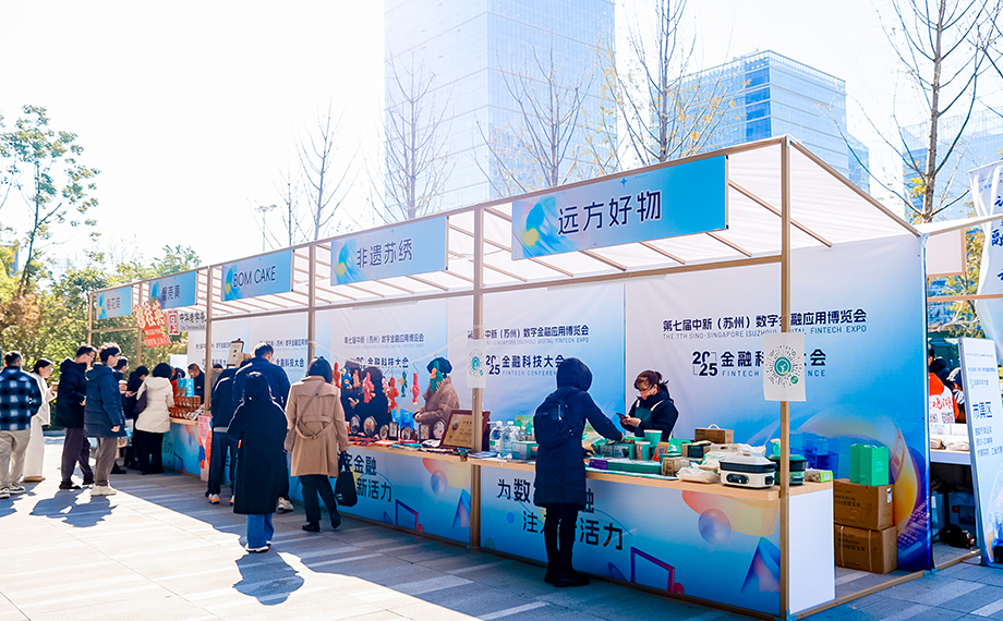 11月19日至20日,第七屆中新(蘇州)數字金融應用博覽會、2025金融科技大會在蘇州國際數據港召開。一場融合傳統韻味與數字活力的金博會數字金融市集同步熱鬧開市。市集以非遺手作、蘇式美食、數字潮玩等吸引大批市民駐足。在“數字金雞湖”平臺的全流程支持下,將金融科技的便捷融入逛展點滴。
