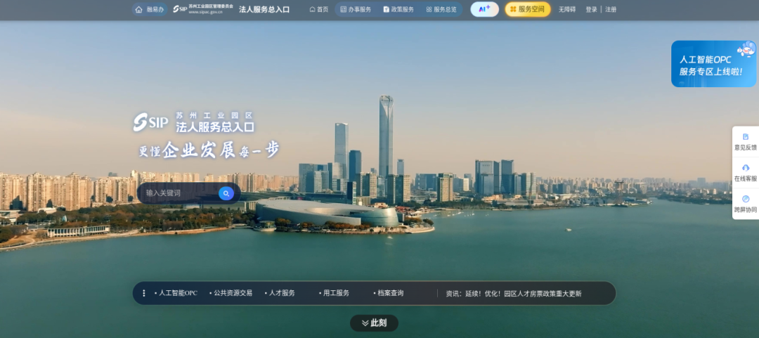 2025年3月,園區(qū)企業(yè)綜合服務(wù)平臺——法人服務(wù)總?cè)肟谡缴暇€啟用。作為園區(qū)聚焦企業(yè)服務(wù)、政務(wù)服務(wù)、產(chǎn)業(yè)服務(wù)融合創(chuàng)新的探索實踐,以及推動“一網(wǎng)通辦”向“一網(wǎng)通服”升級的關(guān)鍵突破,園區(qū)“法人服務(wù)總?cè)肟凇眹@企業(yè)全鏈條需求、立足企業(yè)發(fā)展視角,在全國首創(chuàng)“AI服務(wù)總?cè)肟凇薄⒃谌珖氏却蛟臁癙erson in Enterprise”(PIE)用戶體系、在全國政務(wù)服務(wù)領(lǐng)域創(chuàng)新推出“流暢設(shè)計”體系,著力推動服務(wù)事項從能辦可辦到好辦易辦。