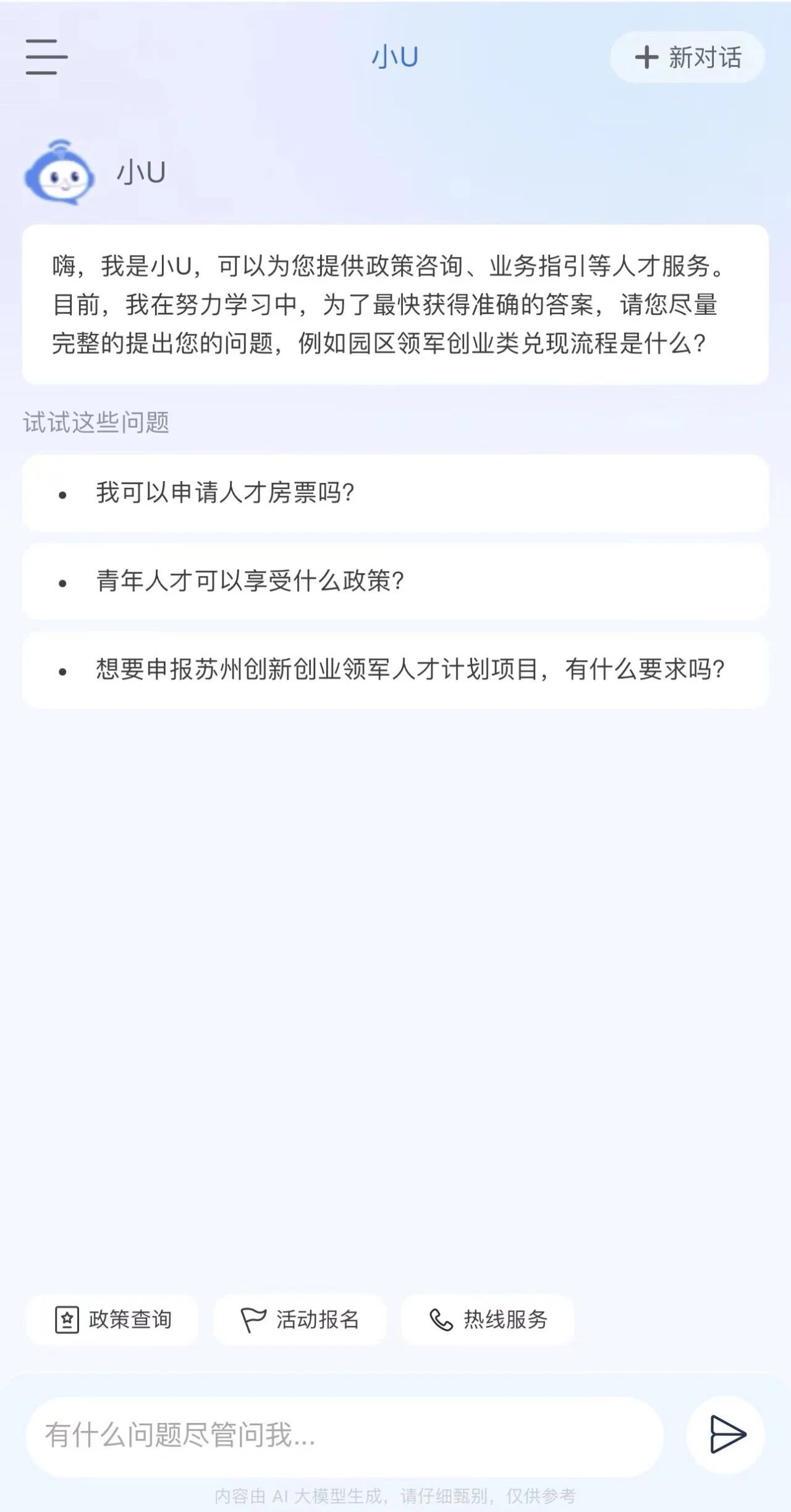 自2025年上線以來,“小U”已累計提供對話服務(wù)6107次,平臺瀏覽量達(dá)8.2萬次,服務(wù)訪客超2萬人,構(gòu)建起“政策秒配、服務(wù)無界”的智能化人才服務(wù)體系。