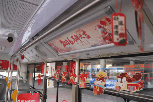 在保障運輸暢通的同時,節(jié)日的溫暖也融入車廂細節(jié)。以“新春逐光、馬踏春陽”為主題的新春裝飾,讓乘客一踏入車廂便感受到濃濃年味。春運期間,新惠巴士將持續(xù)以溫馨服務(wù)、整潔環(huán)境,守護每一位乘客的歸途,讓新春祝福隨公交一路傳遞。