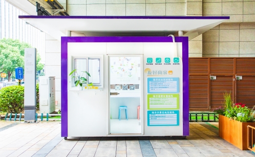 誠(chéng)新驛站半開放式空間嵌入商業(yè)街,全天候開放,50米范圍涵蓋衛(wèi)生服務(wù)站、衛(wèi)生間、電動(dòng)自行車充電樁,與城邦社區(qū)黨群服務(wù)中心相鄰又相隔,新就業(yè)群體來(lái)此不會(huì)感到拘束卻又能享受服務(wù)。