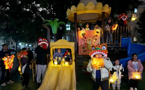夜幕降臨,華燈初上,活動(dòng)迎來(lái)了高潮——“燈火萬(wàn)家·流動(dòng)的‘XIN’福”花燈巡游。由社區(qū)工作人員、志愿者以及手持自制花燈的親子家庭組成的巡游隊(duì)伍,宛如一條流動(dòng)的燈河。巡游隊(duì)伍從生機(jī)盎然的社區(qū)蔬樂(lè)園出發(fā),寓意著耕耘與收獲;隨后蜿蜒穿行至熱鬧的居民樓下,將祝福送到家家戶戶門前;最終抵達(dá)孩子們的樂(lè)園社區(qū)游樂(lè)場(chǎng),這里是夢(mèng)想起航的地方。一路上,由志愿者和社區(qū)青少年組成的“舞獅隊(duì)”與居民熱情互動(dòng),小獅子調(diào)皮地眨著眼睛,向大家拱手拜年。小朋友們熱情地向沿路的居民贈(zèng)送精致的元宵燈籠,一只只燈籠傳遞到居民手中,點(diǎn)亮了夜色,也溫暖了人心。